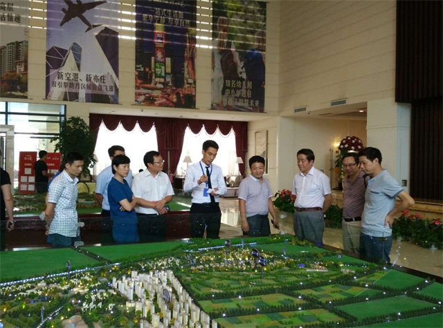 2015年8月5日下午,锦州银行铁路支行行长毕宏、副行长张朝阳、主任赵月等一行8人与集团公司行政副总高振伟、财务部投资处副处长钟成国到永清项目进行参观考察。集团公司董事长助理吴志民、集团法务总监郭庆泽、地产公司总经理田昊、地产公司副总吴培金等人热情接待其一行。
