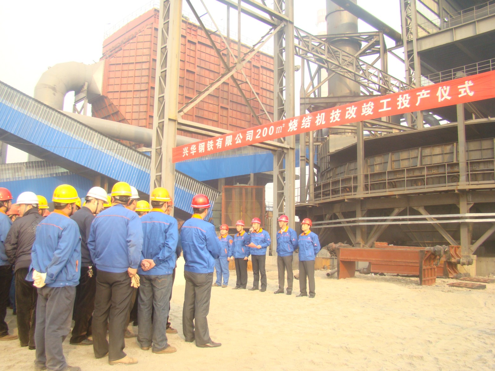据悉:该项目总投资2.5亿元,设计年产195万吨。为确保工程的顺利进行,公司组建了强有力的项目班子,选择了优良的施工队伍,于今年3月15日正式开始土建施工,8月份开始设备安装,10月进入单机试车到今天正式投产,历时短短八个多月,再次体现了兴华速度。在项目施工中,公司董事长非常关注,多次深入工地检查指导,各项目小组在付总具体指挥下,坚持高标准、严要求、全过程地抓好安全、质量和进度管理;各施工单位精诚合作,抓紧施工;炼铁厂烧结车间提前介入,做好人员培训,确保新烧结顺利投产。