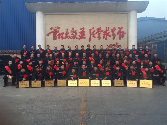 会上对2015年先进车间(科室)、先进班组、生产标兵、先进个人、工艺优化奖、安全专项奖和厂长特别奖进行颁奖并合影留念。