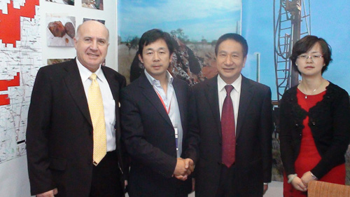 公司董事长陈茂春与澳大利亚王朝金属公司董事长郑健如(左二)、投资顾问JEAN MICHEL,公司国际贸易部副部长孙晓冬在会场合影