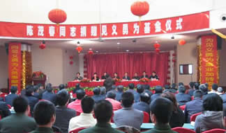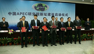 中国APEC研究院建设新址启动仪式上,外交部党委书记、副部长王光亚向陈茂春董事长颁奖