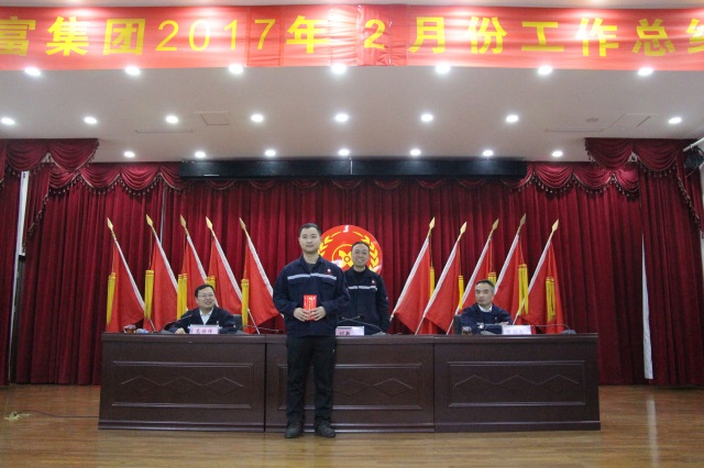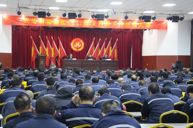 2017年3月7日晚19:00,兴华财富集团二月份工作总结大会在公司会议室隆重召开。集团公司领导付新岗、李福忠、高振伟,各厂、部领导以及公司班长以上管理干部、工程技术人员共计300余人参加大会。会议由行政副总高振伟主持。