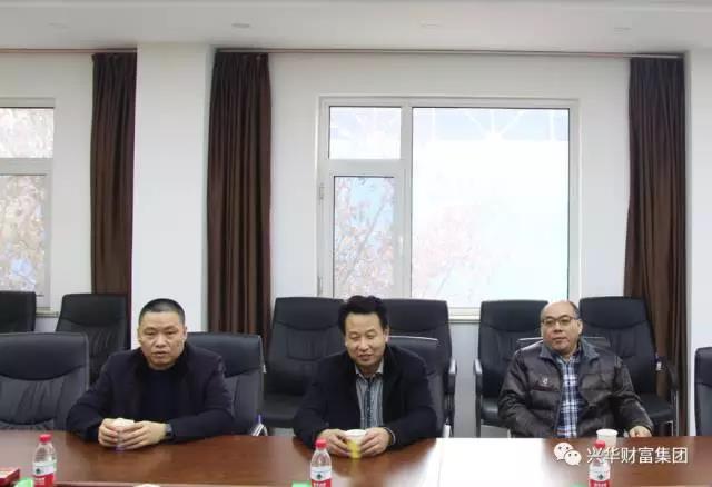 在会议室,陈董首先对矿山公司领导在节前到公司慰问表示感谢。随后就钢铁公司目前的发展情况和未来规划向史董事长一行作了详细汇报。他讲到:“兴华公司截止目前已经在武安发展了18年,18年来在冶金矿山公司的领导下,在全体兴华人的共同努力下取得了优异的成绩。2017年是兴华集团转型升级的关键时刻,我们将继续坚持“三经营”即经营人、经营产品、经营财富;“三发展”即发展兴华钢铁,发展中联钢信电商,发展永清农业地产;“三开放”即开放思想、开放思路、开放财路的发展理念。以钢铁为主业,发展中联钢信电商,联袂15家核心股东、300家会员股东、个人参股共同打造云端商贸城,帮助钢铁企业降低成本,提高效益”。