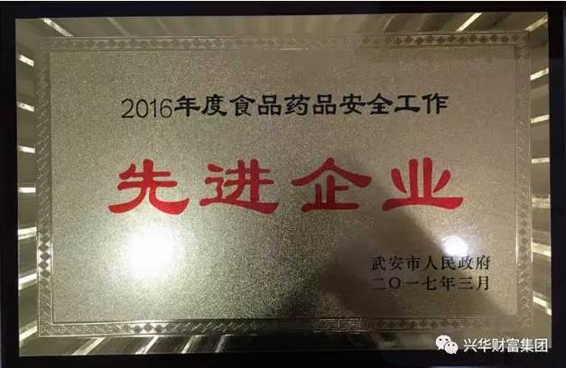 2017年4月6日,由武安市人民政府组织的全市食品药品安全工作会在武安宾馆召开,财富国际酒店作为餐饮行业代表,荣获2016年度全市食品药品安全工作“先进企业”荣誉称号,总经理助理连杰荣获全市食品药品安全工作“先进个人”。